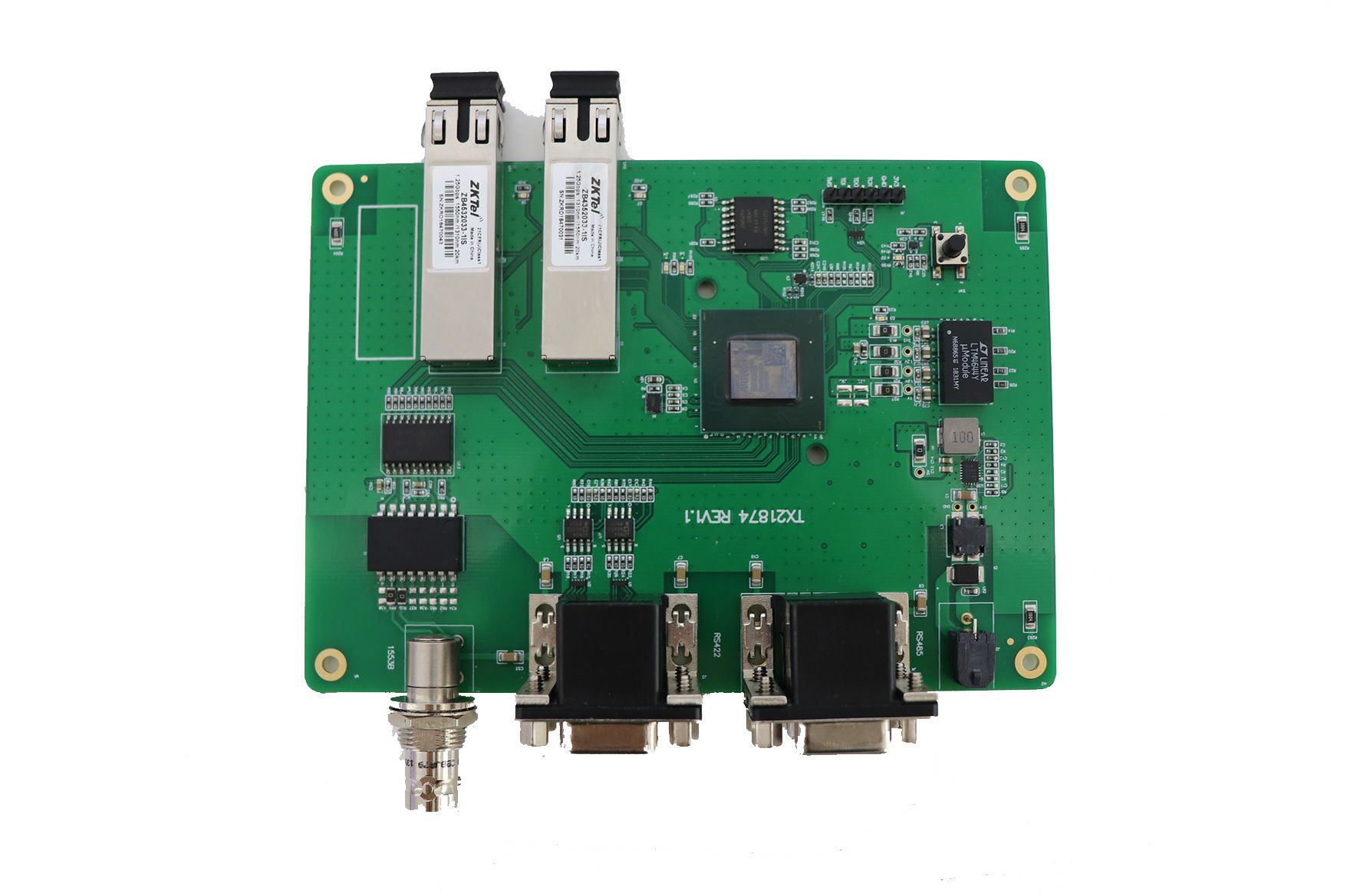 本产品是一款多接口光端机模块,包括1553B/RS422/RS485等接口,采用FC底层协议,顶层加载1553B、串口等多种协议,具备FC协议的可靠性高、传输稳定等特性,双路光纤传输热备份,支持多种协议同时透传,接口可根据需求扩展。