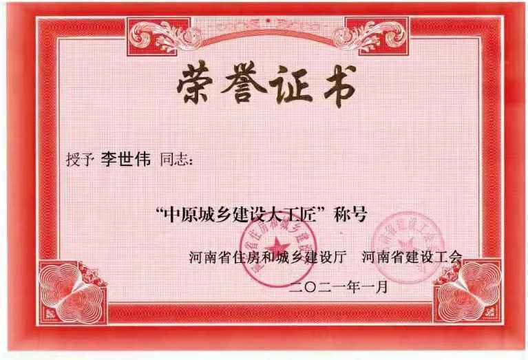 万博max3.0官网-中国一站式服务平台李世伟同志获“中原城乡建设大工匠”称号